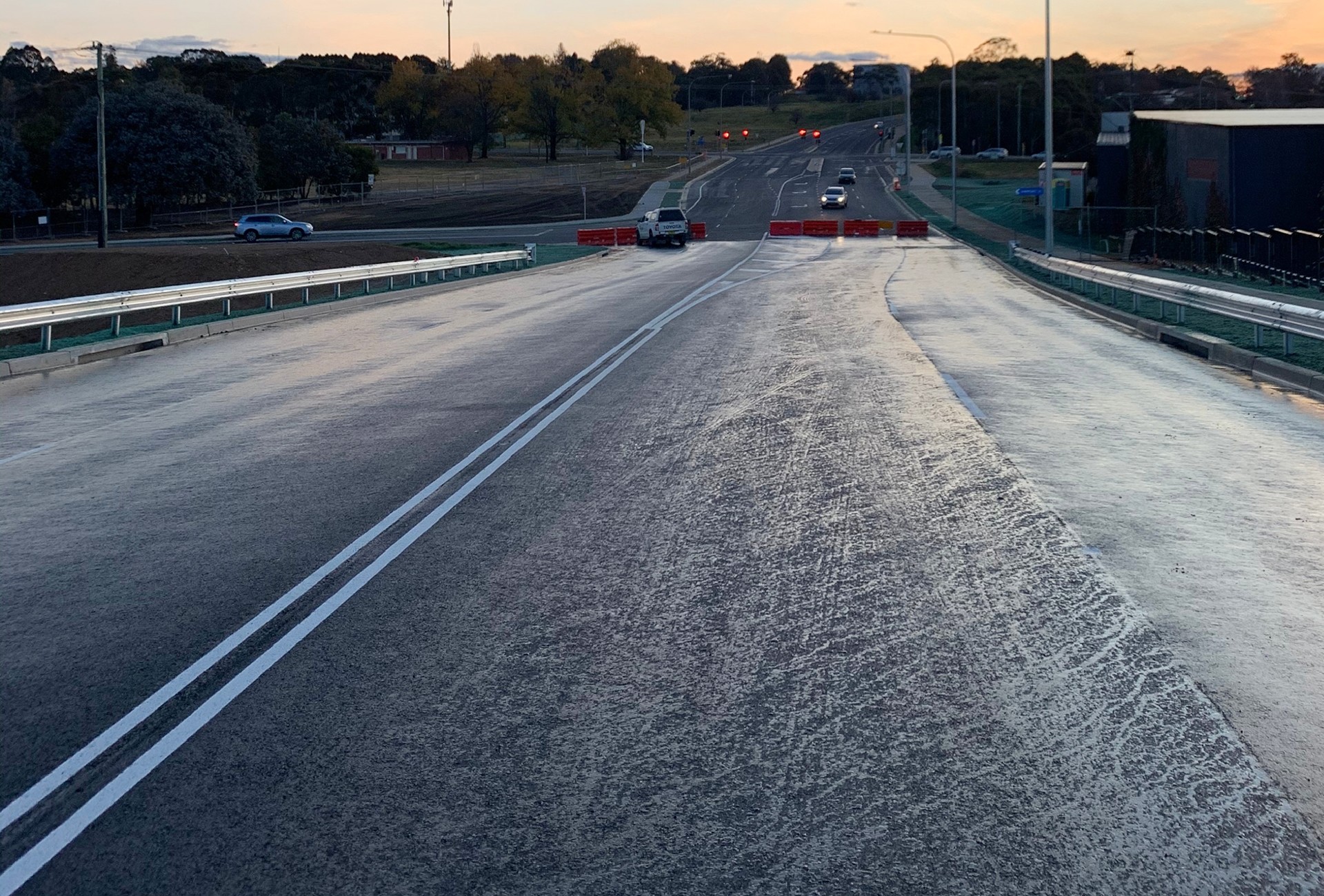 Intersection Upgrades: Modification and upgrade of connecting intersections at each end of the new road section to tie into the existing road network. Works included new turning lanes, traffic islands, line marking, and signage